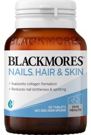 Blackmores Nails, Hair & Skin adalah suplemen kesehatan dengan formula komprehensif yang diformulasikan untuk menyediakan nutrisi penting guna memelihara kesehatan kuku, rambut, dan kulit. Produk ini mendukung pembentukan kolagen, yang esensial untuk menjaga integritas dan elastisitas kulit, sekaligus memperkuat struktur kuku agar tidak mudah rapuh atau pecah. Suplemen ini juga membantu menjaga kilau rambut, melindungi tubuh dari kerusakan akibat radikal bebas, serta mendukung fungsi sistem imun dan kesejahteraan umum.